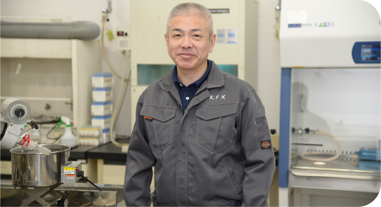 私は主にスーパーH菌についての研究・調査・開発を行っています。入社した当時はスーパーH菌の開発が成功した直後で、データとしてはまだまだ不十分でした。同じように培養していても、温度や湿度、天気によってもできるものが異なっており、安定して同条件の菌を生み出すことは非常に大変で、感性頼りの部分が多い状況です。だからこそうまくいったときの達成感は大きく、没頭してしまう毎日です。また、より油を分解できるスーパーH菌を作れるように研究するのも重要な仕事です。自分が開発したものが社会貢献につながり、会社の発展に直結していると感じることがやりがいにつながっています。