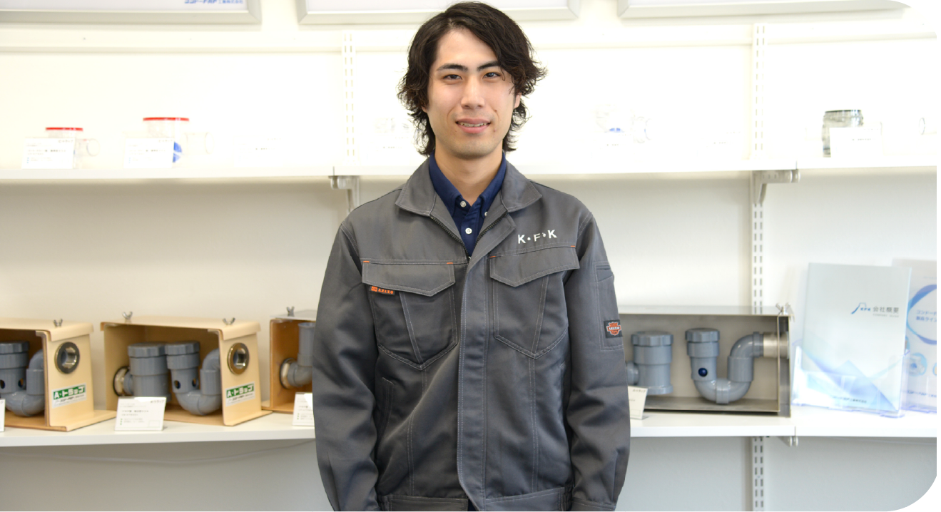 現場調査と新製品の開発が私の主な仕事です。まずは現場調査。お客様から仕事の依頼が来たら、まずは現場の状況を確認する必要があります。スペースはどのくらいあるのか、どのような環境に置くのかなど、お客様のニーズを聞きながら情報収集を行います。その情報を元に社内の設計メンバーと打ち合わせを行い、値段交渉するところまでが現場調査の主な仕事です。そして合間を見つけて新製品の開発にも取り組んでいます。新製品といってもゼロから生み出すのではなく、既存の製品にどういったシステムを複合させればよいかを考えています。実験や研究を繰り返しながらアイデアを出していくのですが、うまくいかないことも多々あります。しかし、私は考える過程が好きなので、その失敗も次につなげるためにどうしたらいいのか考えていくきっかけとなり、やりがいにつながっています。まだまだ知識が足りないこともありますが、水処理だけでなく、色んな所にアンテナを張りながらお客様のニーズに応えられる製品を開発していきたいです。